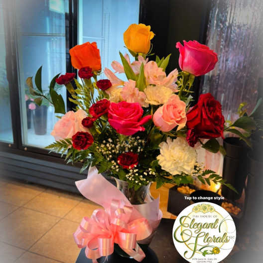 Price: $75.00 Elegant Pink Rose & Carnation Vase Arrangement Product Tags: Best seller Same-day Delivery
