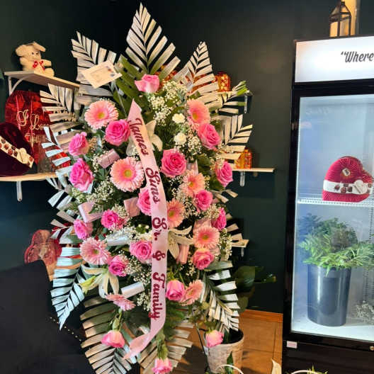 Price: $175.00 Peach & Pink Rose Tower – Luxe Celebration Arrangement Product Tags: Next-day Delivery